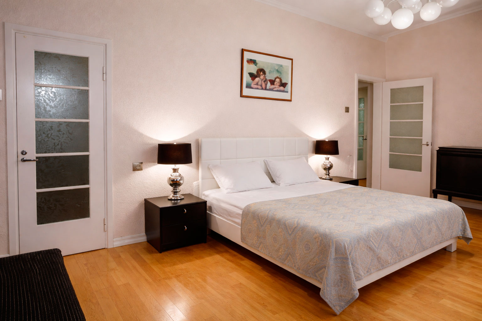 Tastefully combining modern furnishings with historical details, this spacious penthouse apartment offers a refined and comfortable stay. The apartment features a coffee machine, TV, and hairdryer. In addition to the bedrooms, it includes a fully equipped kitchen, living room, dining area, and two spacious bathrooms with walk-in showers. The apartment is recently renovated, bright, and fully equipped with all essential amenities. A private terrace overlooks the garden, swimming pool, and park. Restaurants and city life are just a short walk away, while the beach is only 10 minutes on foot. The Farmer’s Market and Rimi supermarket are nearby. It is ideal four adults and two children. Please send us request so that we can make you a personal offer. A true hidden oasis in the heart of Pärnu.